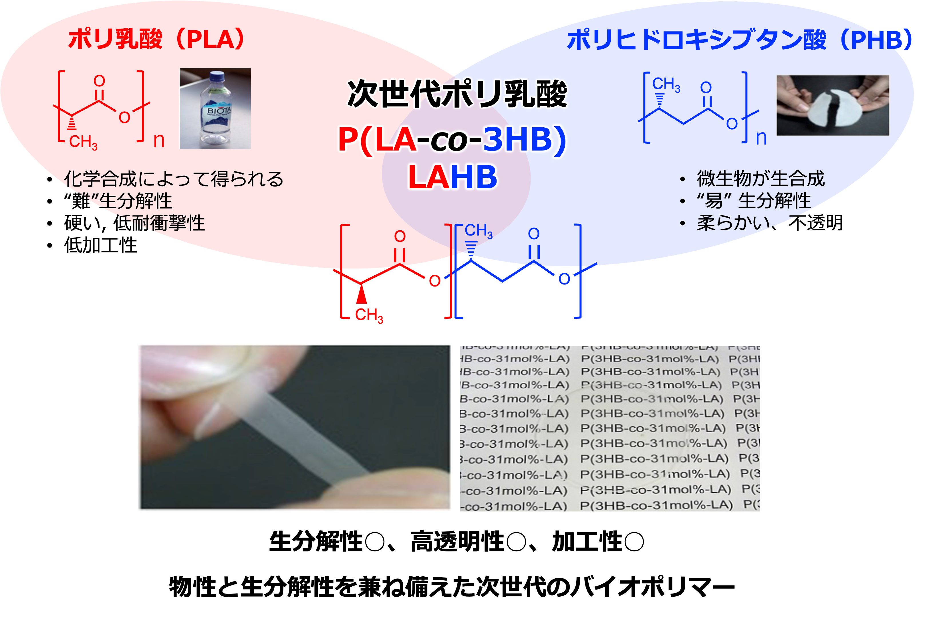 As a sustainable solution to this worsening problem, we have developed a novel biopolymer, LAHB, composed of lactic acid (LA) and 3-hydroxybutyrate (3HB). This innovative material is synthesized by microorganisms using plant-derived sugars as feedstock. Unlike conventional polylactic acid (PLA), which biodegrades sufficiently only in limited environments such as industrial composting, LAHB naturally decomposes across diverse environments, including the oceans. Remarkably, its biodegradability has even been confirmed in the deep sea, where degradation is typically difficult to achieve.