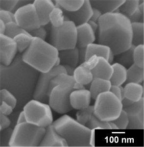 SrTaO2Nは600 nmまでの可視光を吸収する酸窒化物材料です。しかし、従来の製法では光励起された電荷を表面に輸送するのに適した小径で結晶性の良い材料を合成することが困難でした。当研究室では、硫化物であるTaS2を原料とすることで、粒径100 nm以下のSrTaO2Nを合成できることを見出しました。さらに、合成したSrTaO2Nを用いることで、酸素生成光触媒と組み合わせによる二段階励起型(Zスキーム型)水分解反応の効率を向上させることに成功しました。TaS2を原料とすることで、その他のペロブスカイト型Ta系酸窒化物光触媒も小径な材料を合成できることができることもわかっています。塩化物溶融塩中でのTaS2の反応性の高さが酸窒化物微粒子の小径化に重要な役割を果たしていると考えられています。
