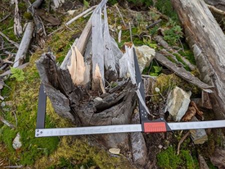 ▼ 写真7 幹折れしたシラビソの直径計測(2021/9/12)
