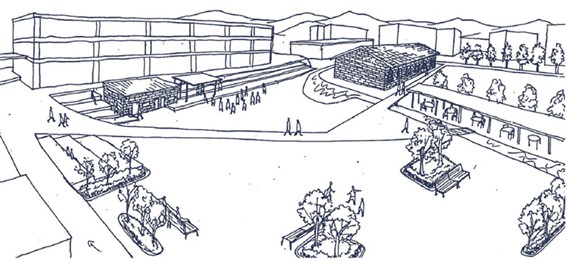 学生や教職員のみならず、地域住民も集い交流できる憩いの場とする。中央広場の一環として