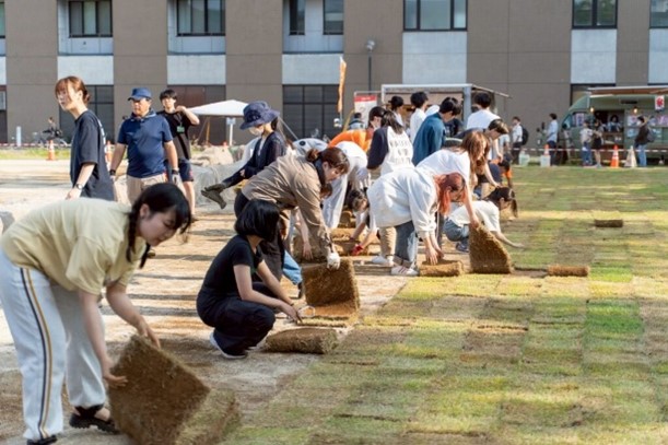 「大学にふさわしいアメニティーの高い緑地を整備する。その際に、芝生やベンチを配置し、