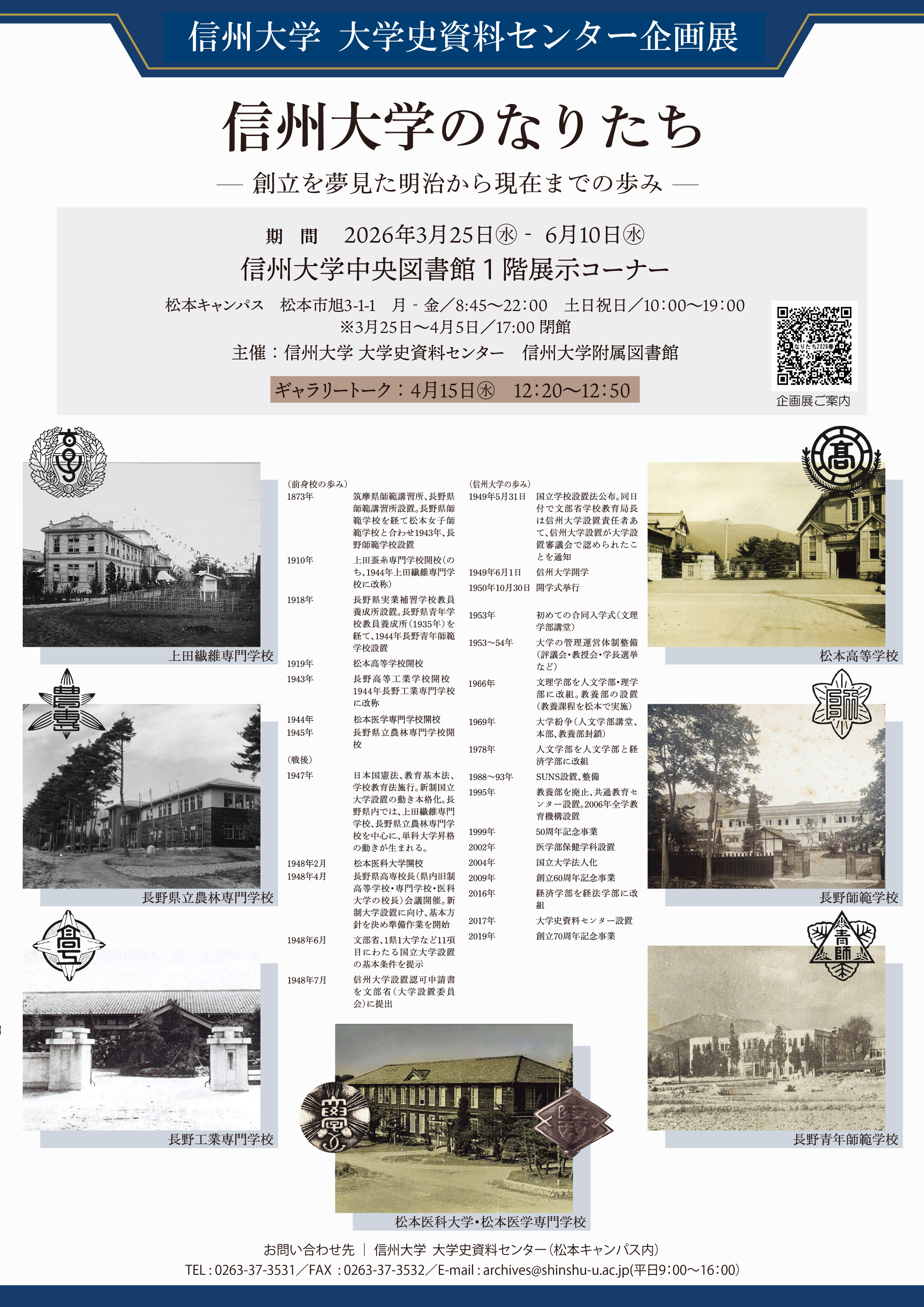本展示が信州大学のなりたちに思いを馳せ、本学の今後の方向性を考える上で、ヒントの一つとなることを期待します。