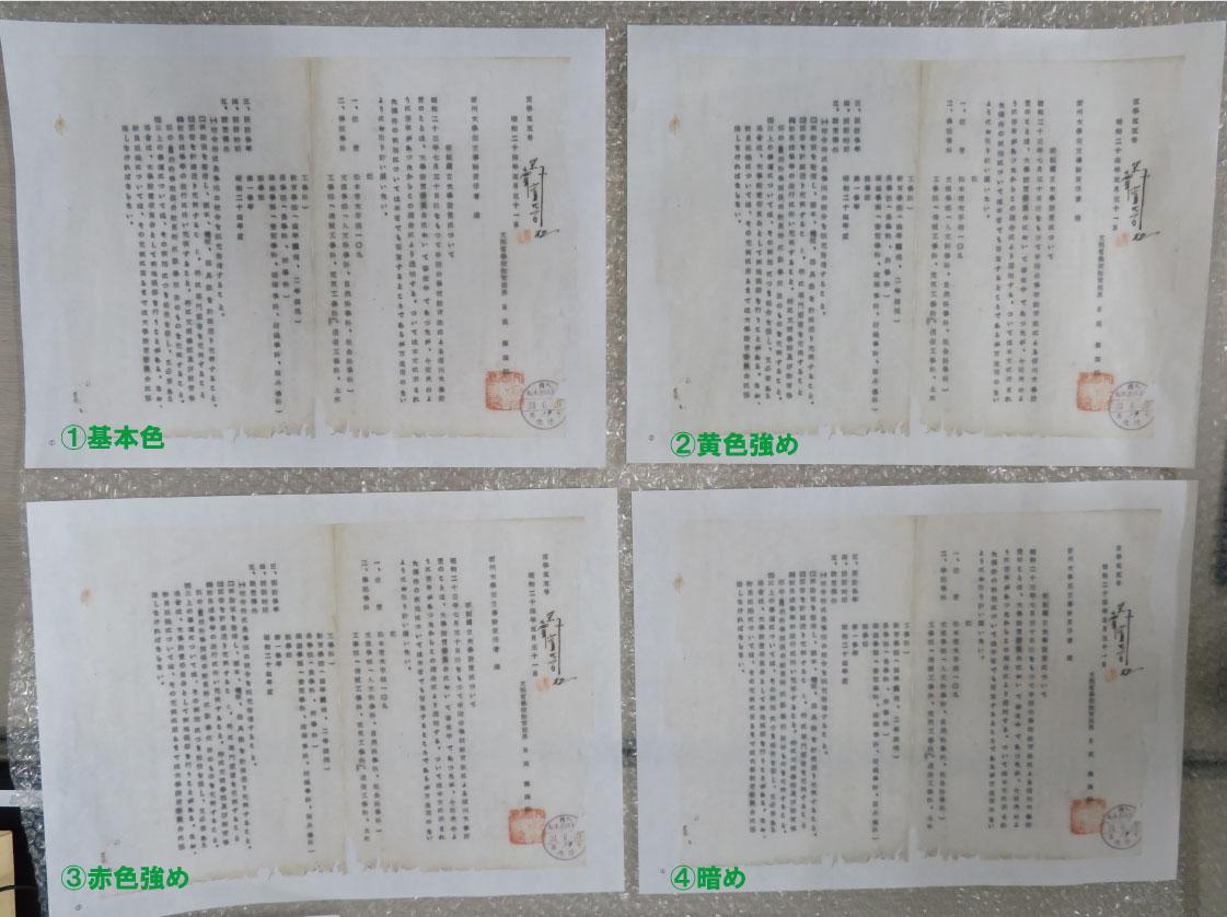 ①基本色 ②黄色強め ③赤色強め ④暗め