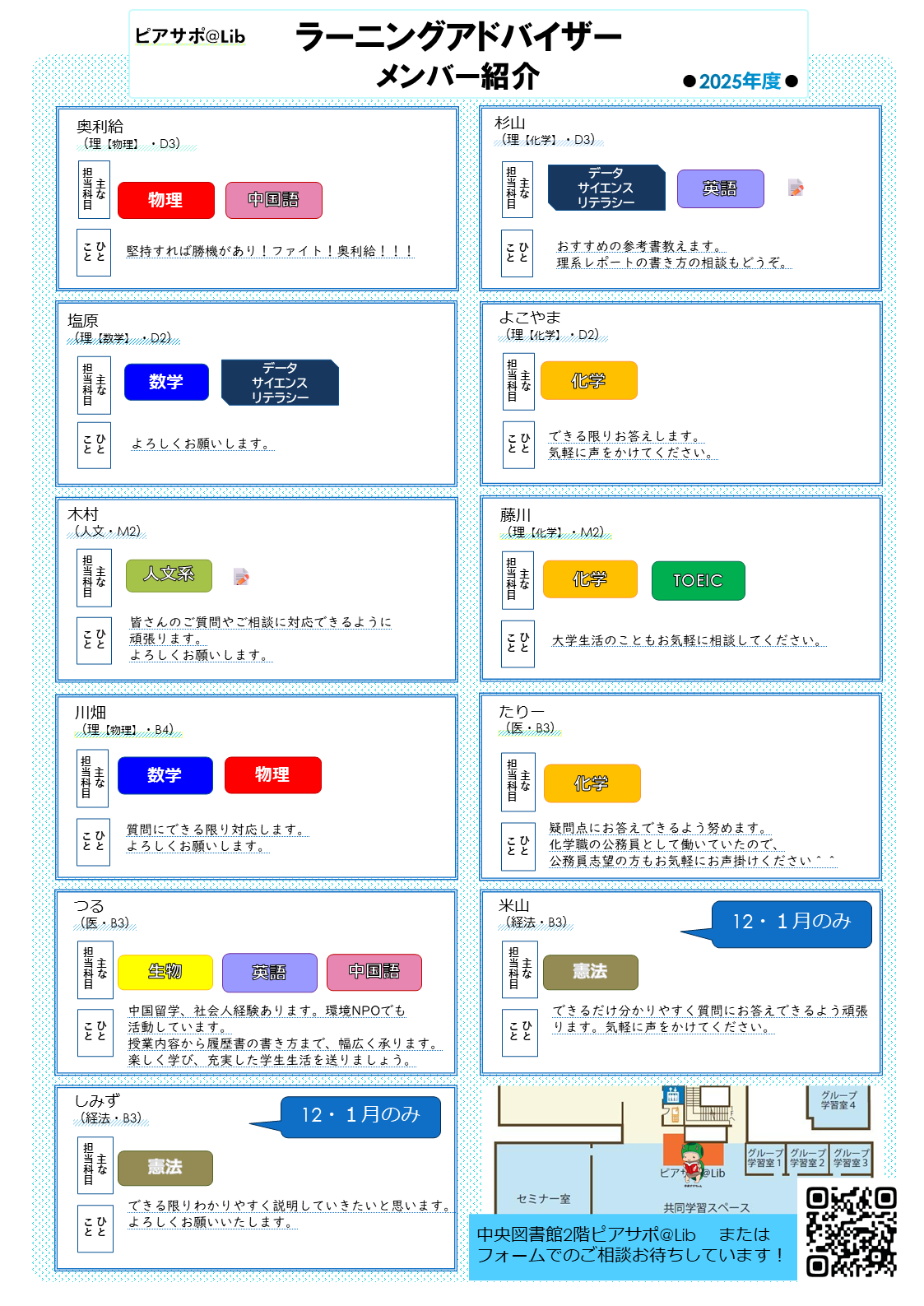 2025年度、相談を担当するラーニング・アドバイザーのプロフィールです。