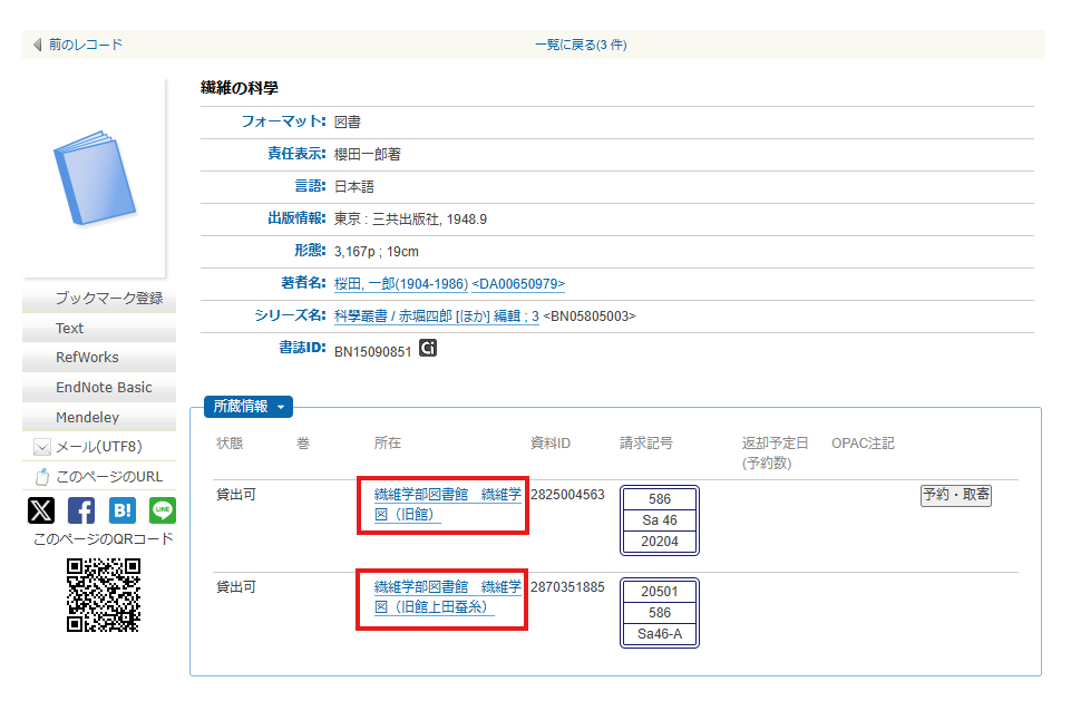 どうしてもお急ぎの場合は、繊維学部図書館カウンターにてご相談ください。