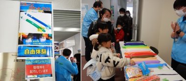 子どもたちからは、スタッフの皆さんに教えてもらったので、とても簡単にバルーンロケットを作れて楽しかった。ロケット、色紙、シールの種類がたくさんあって、自分好みのロケットが作れた。的を目掛けてロケットを飛ばすのが難しかったけど、コツをつかんでうまく飛ばせて嬉しかった。完成品をもらえたので、家の中でも飛ばして遊びます。など、感想が寄せられました。体験を終えて出てきた子どもたちが廊下でバルーンロケットを飛ばして遊んでいたのも印象的でした。