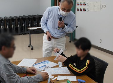 本講座では小松特任教授が、資料や映像、簡単な実験装置を用いて、飛行機とドローンの飛ぶ仕組みについてわかりやすく講義を行い、その後、工作の時間では「紙コプター」を製作しました。