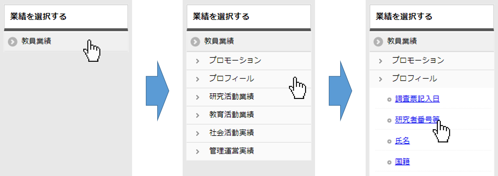 (1) 画面左のメニューを,「信大追加項目」>「信大追加項目」>「信大追加項目」の順に選択します。
