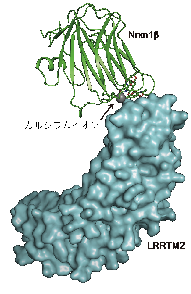 植村健准教授、深井周也准教授らの研究グループは、Nrxn1βとLRRTM2が結合した状態の立体構造をX線結晶構造解析で決定することによって、これらの分子がカルシウムイオンを介して選択的に相互作用する分子機構を明らかにしました。本成果は、神経回路形成のメカニズムの解明や自閉症などの神経発達障害に関わる今後の研究に役立つ知見になると期待されます。
