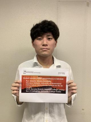 2020年、急遽Virtualで開催されることになった第23回 The International Society of Electrophysiology and Kinesiology (ISEK) において、大学院総合理工学研究科 繊維学専攻 先進繊維・感性工学分野 修士課程1年 足立 凌さん(吉武 康栄 研究室)が学生ポスター賞を日本人で唯一受賞しました。ISEKアワードは、ポスター発表のうち電気生理学および運動学の分野で卓越した研究を発表した学生の中から表彰されています。