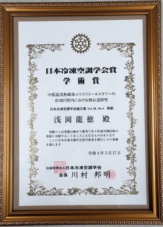 日本冷凍空調学会学術賞受賞