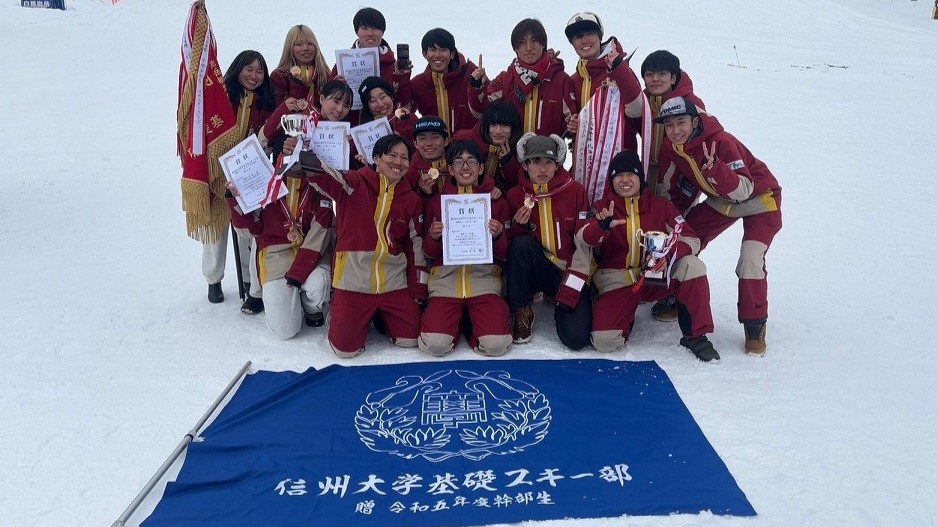 令和7年2月26日から3月3日まで長野県白馬村の白馬岩岳スノーフィールドにおいて第52回全国学生岩岳スキー大会基礎スキーの部が開催され、信州大学基礎スキー部が男子、女子共に総合優勝を勝ち取りました。男子の総合優勝についてはこれで6連覇となります。