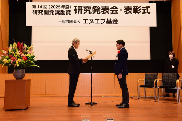 IJIE-GAPファンドプログラム2025ステップ2採択者の大塚隼人特任准教授は2025年11月6日、「第14回(2025年度) 研究開発奨励賞」において研究開発奨励賞を受賞しました。同イベントは一般財団法人 エヌエフ基金が主催する若手研究者への研究開発支援のイベントで、「先端計測」、「環境・エネルギー」、「新価値創成」をテーマとした研究開発が対象です。大塚特任准教授らは応募者の中から書類選考により、研究開発奨励賞受賞者10名のうちの1名として選出されました。