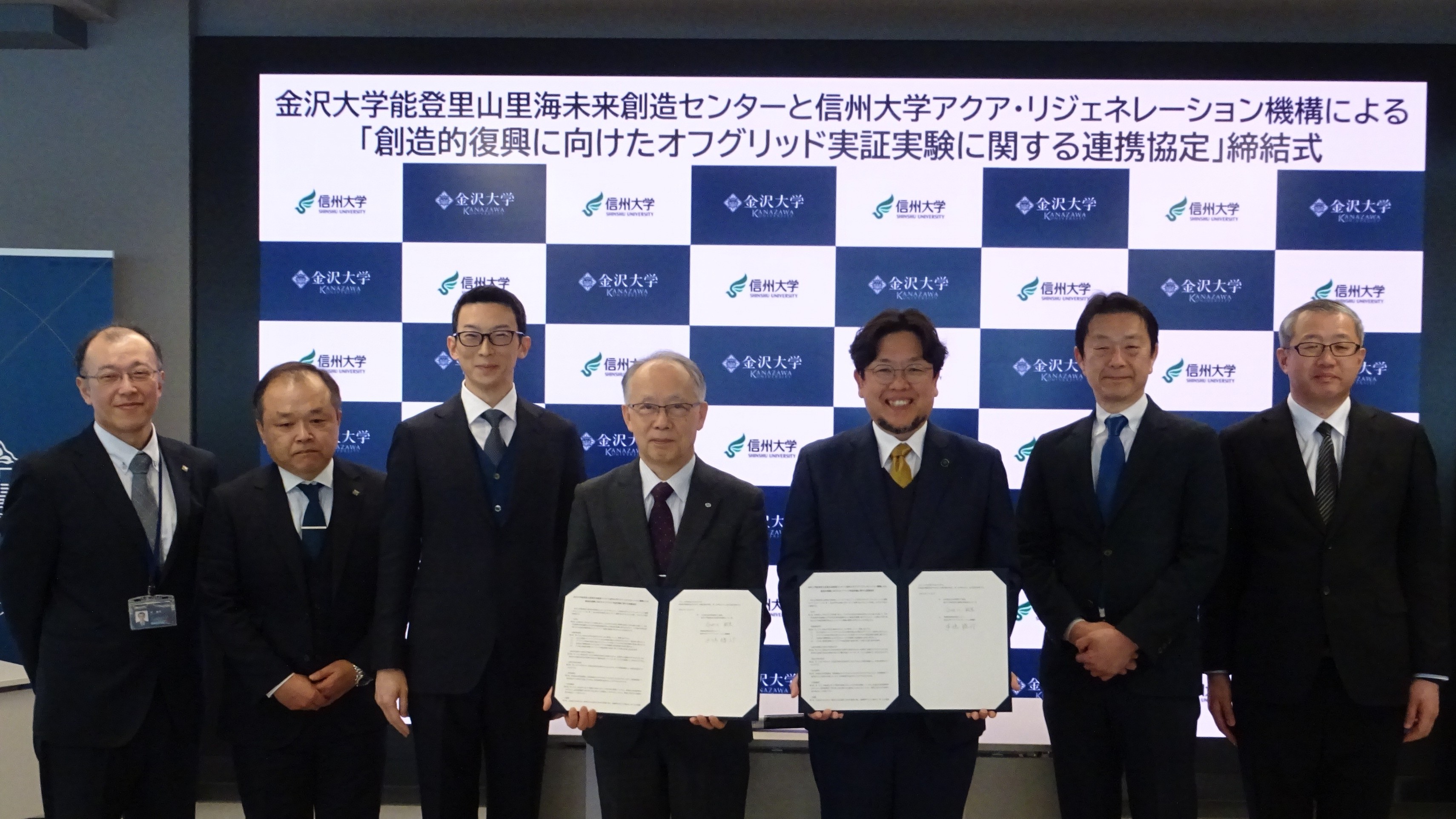 2026年1月22日、信州大学アクア・リジェネレーション機構と金沢大学能登里山里海未来創造センターは「創造的復興に向けたオフグリッド実証実験に関する連携協定」の締結式を金沢大学にて行いました。