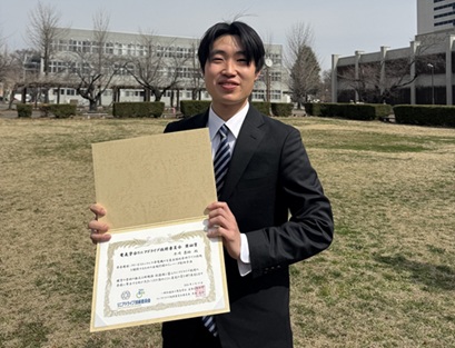 総合理工学研究科 工学専攻電気電子工学分野2年の早川 恭祐さん(佐藤光秀 研究室)が、2026年3月12日(木)~14日(金)に仙台市で開催された電気学会令和8年全国大会おいて、「電気学会リニアドライブ技術委員会奨励賞」を受賞しました。