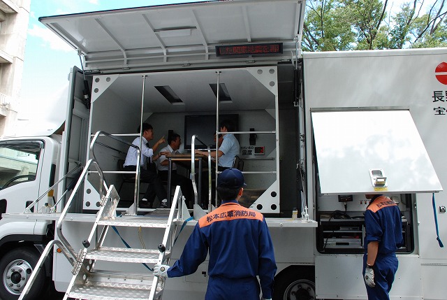 平成22年9月7日(火)に、松本キャンパス本部管理棟前にて、松本広域消防局丸の内消防署の協力のもと、起震車(地震体験車)の乗車体験があり、本学の教職員や学生170人が参加しました。