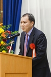 記念式典では、代表校の信州大学 山沢清人学長が、三つの大学がそれぞれの強みを生かし連携を行い、世界の繊維技術を引っ張っていくような人材の育成を目指していくと挨拶。続いて福井大学 福田優学長、京都工芸繊維大学 古山正雄学長に挨拶をいただき、来賓からは、総合科学技術会議常勤議員 相澤益男氏、文部科学省大学振興課大学改革推進室長 松坂浩史氏、経済産業省製造産業局繊維課長 片岡進氏からこれからの繊維・ファイバー分野にプロジェクトが果たす効果への期待が語られました。