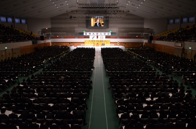 信州大学入学式が平成25年4月4日(水)に松本市総合体育館で行われ、全8学部の新入生と編入学生、合計2,165人が入学しました。