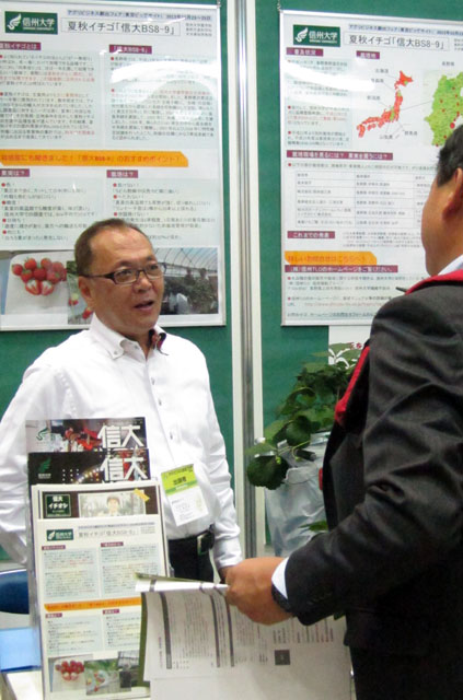 10月23日~25日に開催された『アグリビジネス創出フェア2013』(主催:農林水産省)に本学農学部大井美知男教授の研究成果である『夏秋採りイチゴ「信大BS8-9」』(平成23年7月に品種登録)を出展しました。