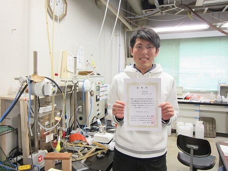 大学院総合理工学研究科 工学専攻 機械システム工学分野2年の窪田隼人さん(牛研究室)が、2017年12月2日に福井大学で開催された「日本金属学会北陸信越支部・日本鉄鋼協会北陸信越支部 平成29年度連合講演会」において、優秀発表賞を受賞しました。