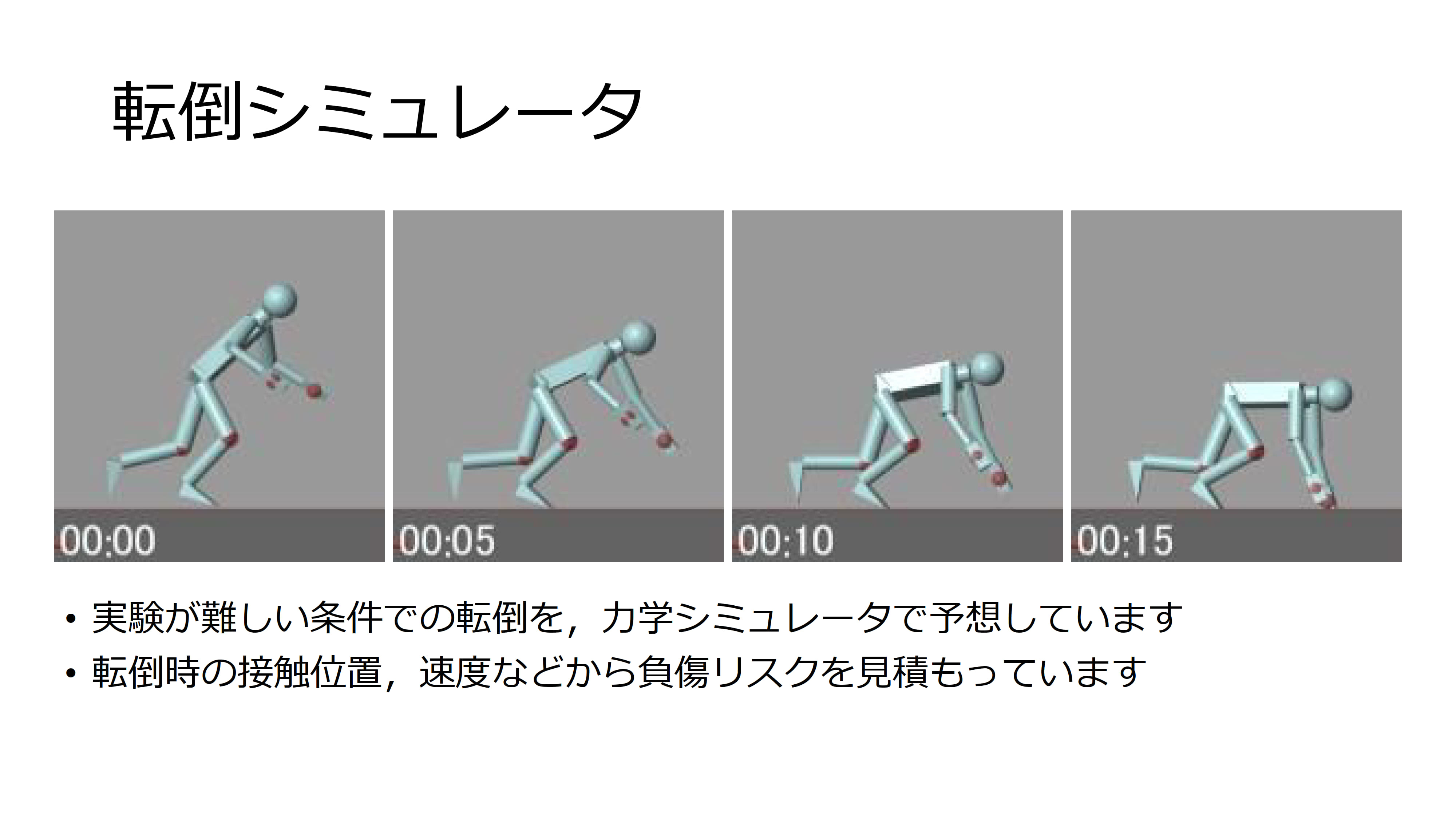 ロボットには、人間の動作を邪魔せずに人間の意図通りに動くことが求められます。人間との動作の不整合は、安全性と利便性を損ないます。そのような不整合発生状況の再現、解析技術を展示します。また、そうした状況を解決するために開発している様々なデバイスを展示します。