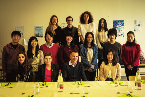 慮しつつ農薬や殺虫剤や化学肥料等は使わず、人為的操作を極力排して作られるワインを味わうことができました。なによりも当主のワイン作りに傾ける情熱と、先祖から受け継いだ土地を農薬等で汚染するわけにはいかないという信念が伝わってきて、学生ともども感銘を受けた次第です。また、ラ・ロッシェルでは、交換留学をしている4名の人文学部生も加わり、イヴァン・ダニエル教授の協力のもと、先進的な都市交通システムを学ぶと同時に、先方の大学生と交流の場が持てたことは、両大学の友好関係促進にもつながる取り組みとなりました。