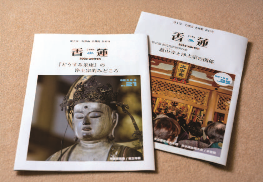 善立寺の寺報「香蓮」。取材、写真撮影、記事執筆、誌面デザインまで、すべて小路さんが行っており、これらの技術は独学で学んだそうです。バックナンバーはウェブでも閲覧できます。