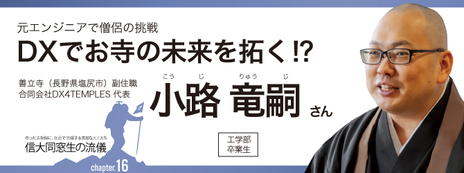 信大同窓生の流儀 chapter.16 善立寺(長野県塩尻市)副住職 合同会社DX4TEMPLES 代表 工学部卒業生 小路 竜嗣さん 信大的人物