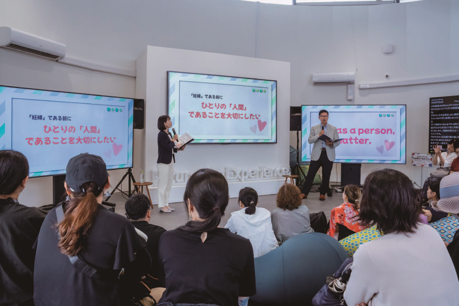 これまでも産後うつの理解促進に向けて様々な場所で講演会を開催してきましたが、産婦人科などの専門職の方々に向けたものが大半でした。今回は一般向けで会場も万博ということで、正直どうなるか不安もありましたが、用意した席は満員となり、大きな手ごたえを掴むことができました。